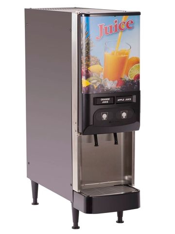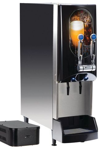 Cold beverage concentrate dispenser with two dispense heads, a High Intensity® Mixing System for premium drink consistency (brix accuracy), and superior burst capacity to provide more cold, quality beverages --- all in an easy to use, operator friendly design.